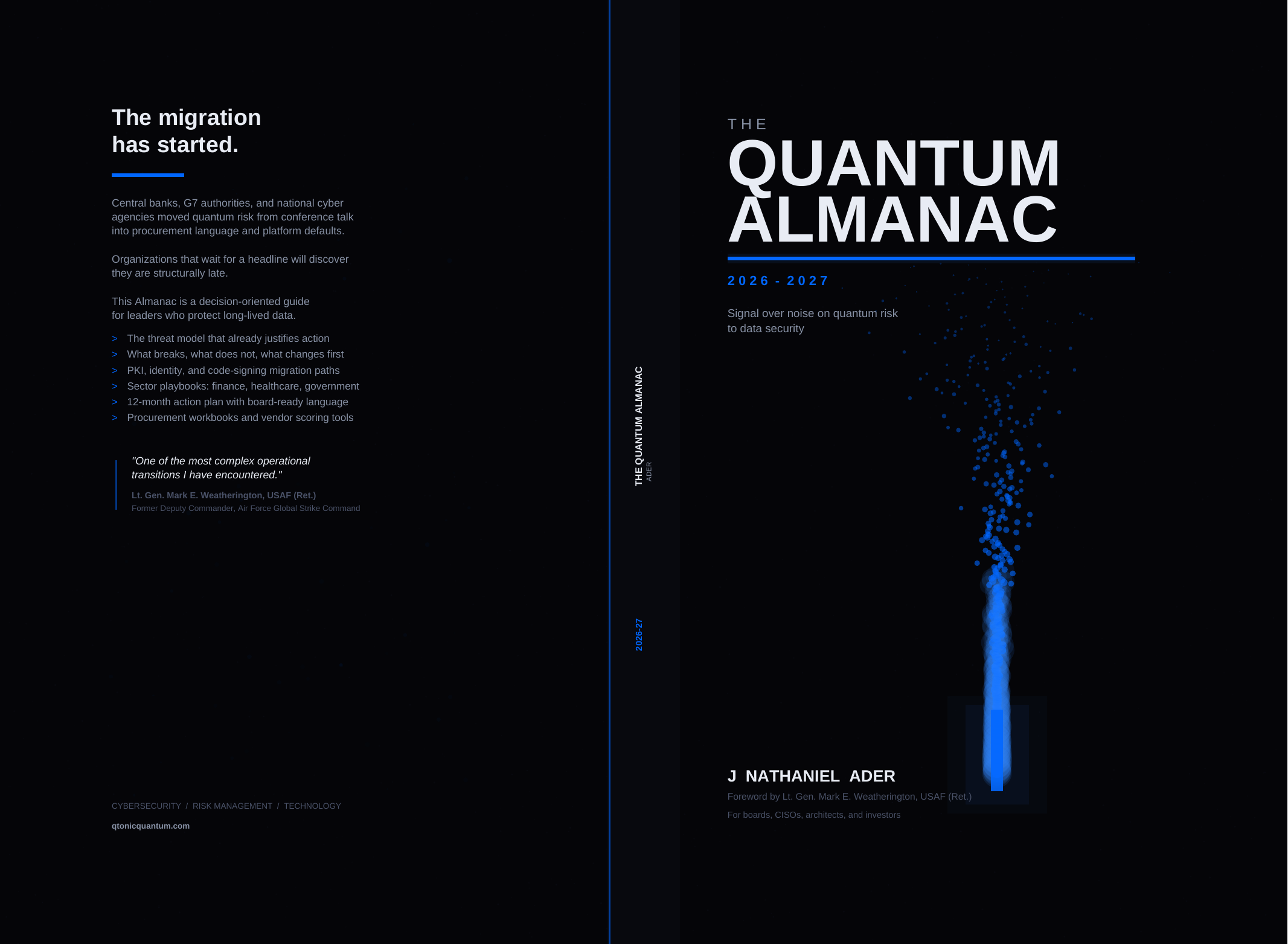 The book treats quantum risk as trust-governance and migration timing, not as a physics prediction contest.